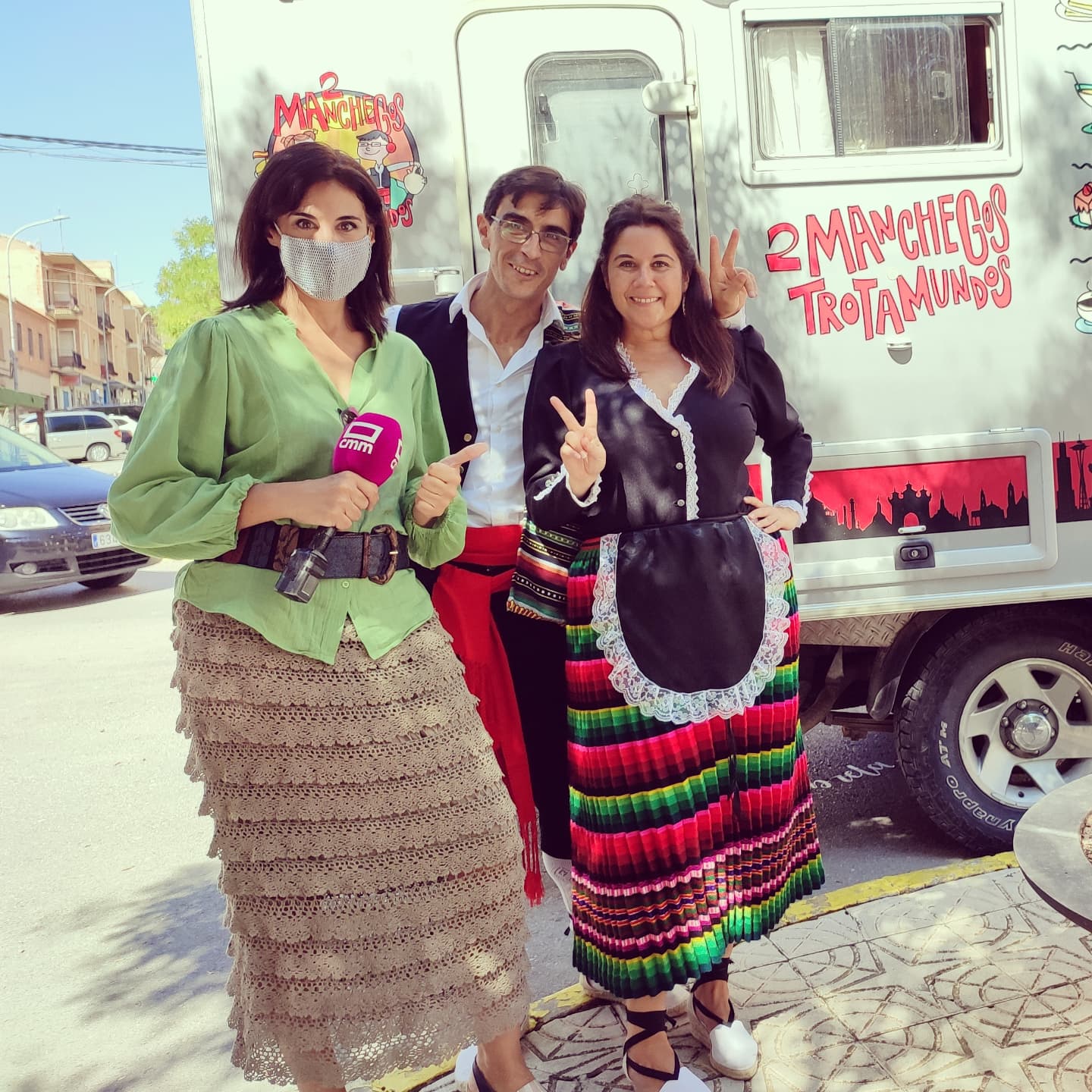 Nos queda poco más de una semana para marcharnos y Guillermo Parterna, el cronista de Tobarra, que quedó encantado con nuestra anterior aventura al leer el libro, nos dice que debemos darle difusión a este nuevo proyecto. Nosotros no tenemos ningún contacto pero el sí, una chica que trabaja para el telediario de Castilla La Mancha, ese mismos día nos convoca Jose Ángel de Radio Tobarra para hacer una entrevista en la radio, nadie sabe nada sobre nuestro logo y nuestra idea: “Recorrer el mundo vestidos de manchegos” y financiar nuestra aventura llevando nuestra cultura y gastronomía a todos los rincones del planeta, ¡vamos un bombazo!