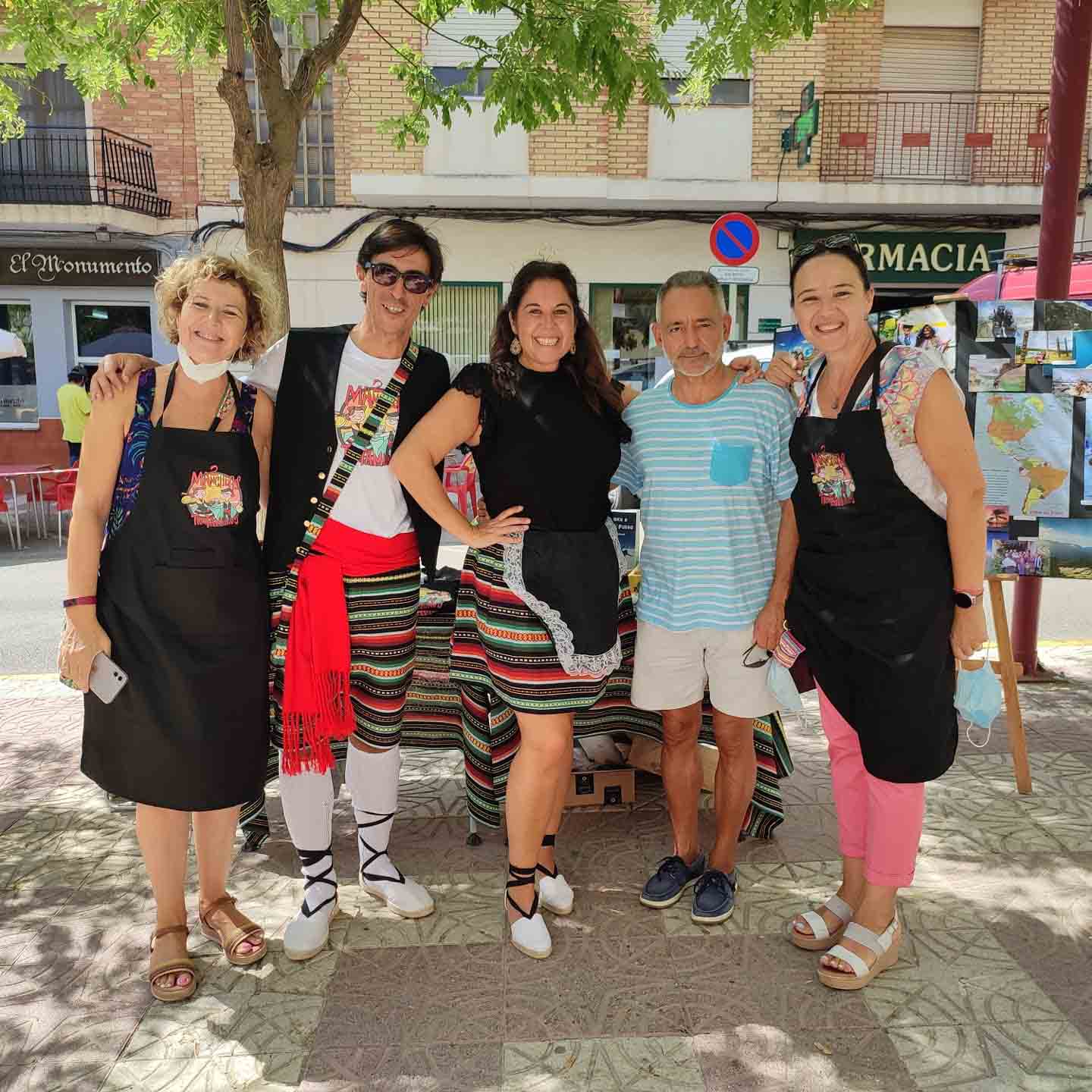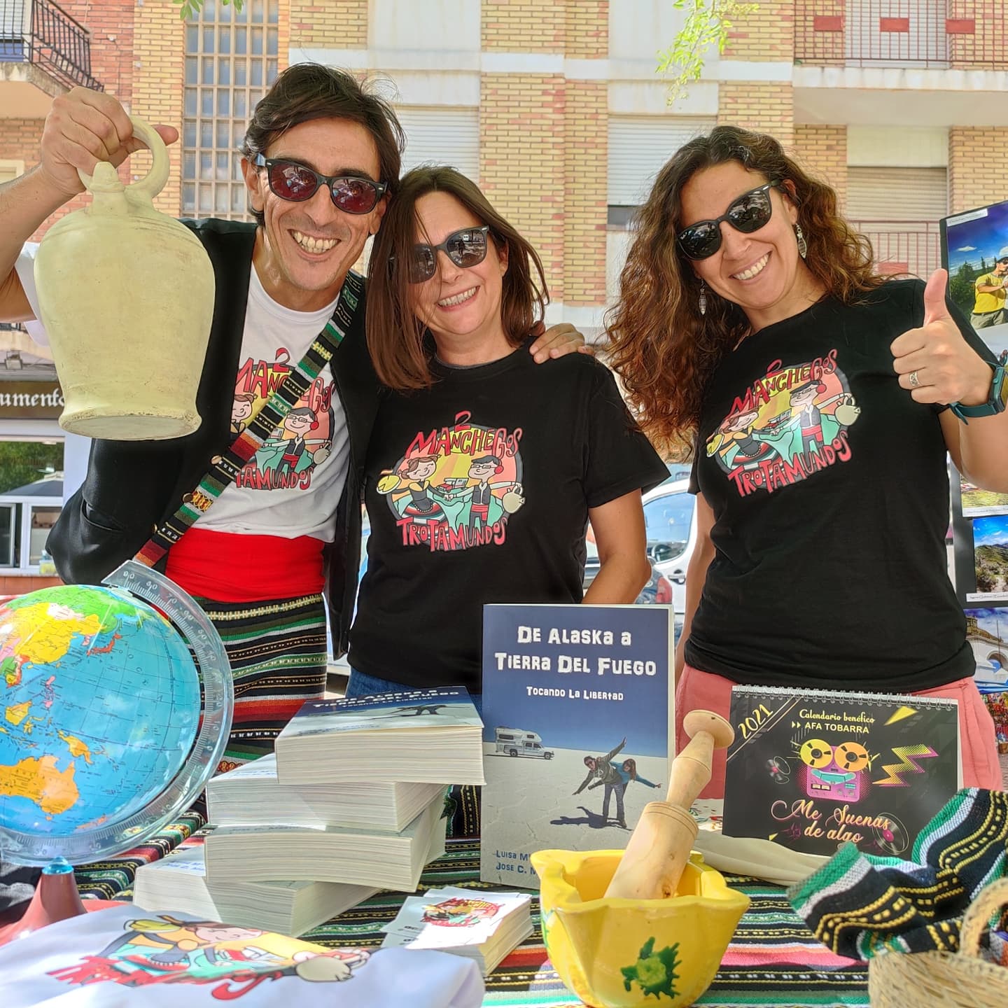 Por otra parte hemos hablado con el ayuntamiento de Tobarra para poner un stand en el mercado del pueblo y vender nuestro libro, camisetas, mandiles, pegatinas, etc, francamente es un éxito, la respuesta de la gentes es tremenda y los vecinos se pasan a saludarnos, desearnos lo mejor y colaborar con nosotros. Llevamos unas semanas también dándole a las seguidillas manchegas, con lo que aprovechamos el día del mercado para marcarnos unos buenos bailes y deleitar a los tobarreños con un poco de folklore.