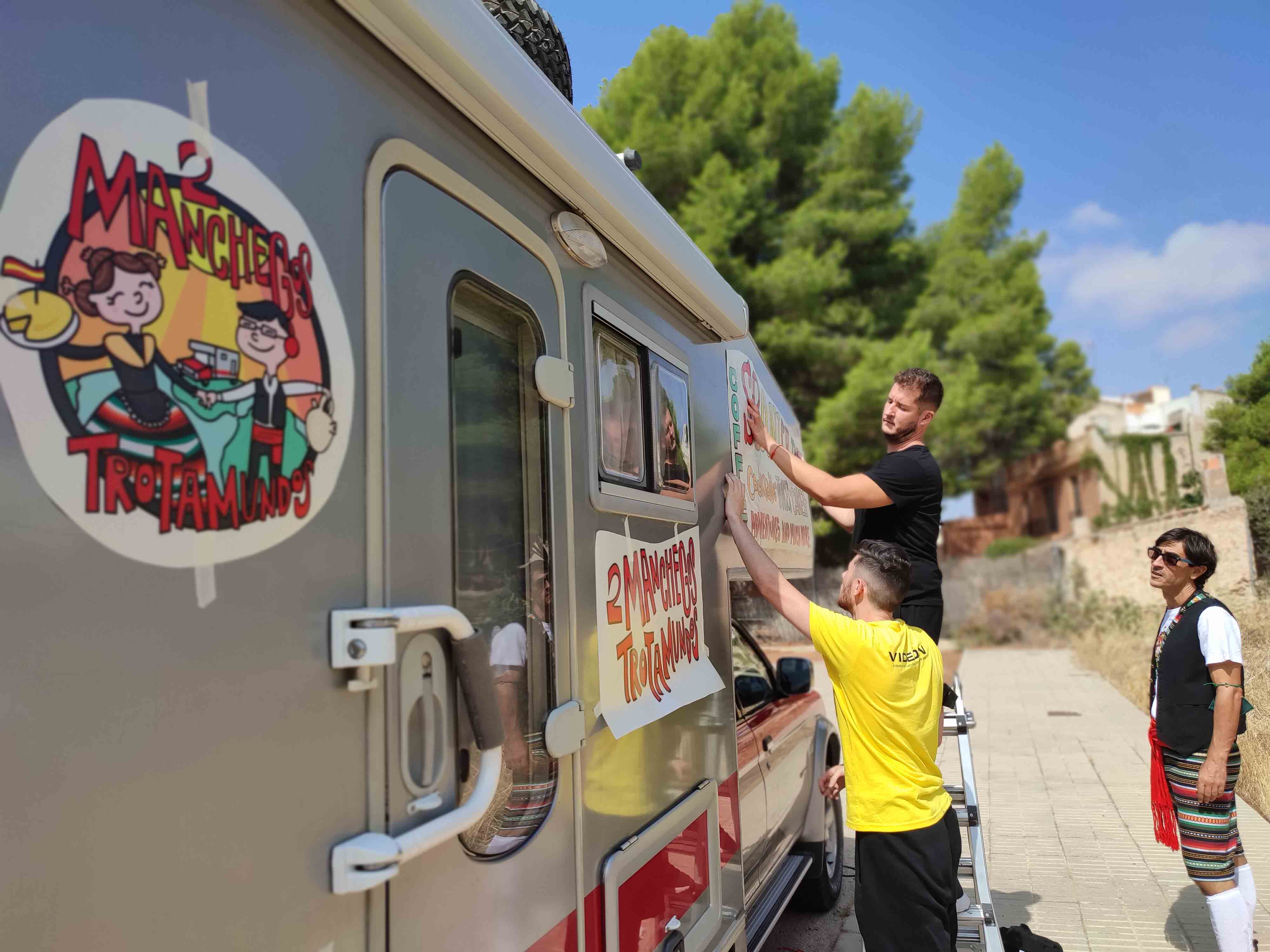 Entre tanto, queremos hacer un diseño de logo que nos represente, customizar a La Española y hacer una página web, y esto será el mayor quebradero de cabeza, porque no es sencillo trasmitir lo que uno quiere y como lo quiere, pero finalmente con ayuda de los chicos de VIDEON, tenemos un bonito y divertido logo y LA ESPAÑOLA decorada para la gran aventura. ¡GRACIAS CHICOS !
