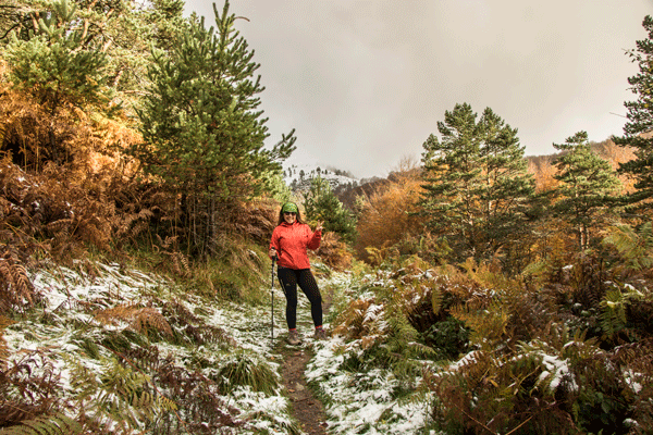 La noche es fría y húmeda, y las goteras no solo están en el dormitorio, sino también en el baño, que parece una piscina. Pero por la mañana sale el sol, por fin y aunque cuando salimos de la Española el viento casi nos lleva volando decidimos hacer una caminata por estos parajes solitarios, cruzando riachuelos y disfrutando de unos paisajes espectaculares que han dejado las primeras nevadas.